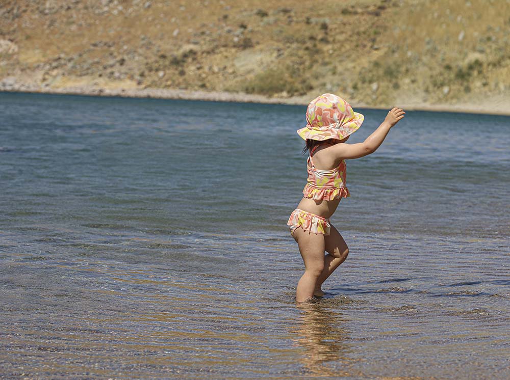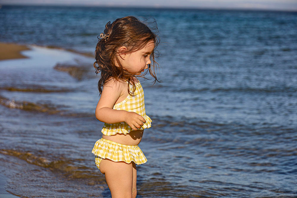 The Bikini Set offers superior sun protection with a factor of 50+ and recycled polyester fabric dries quickly, making it perfect for outdoor activities. The bikini top features a unique crossed strap design for added style. Enjoy the sun worry-free with this trendy and functional bikini set.